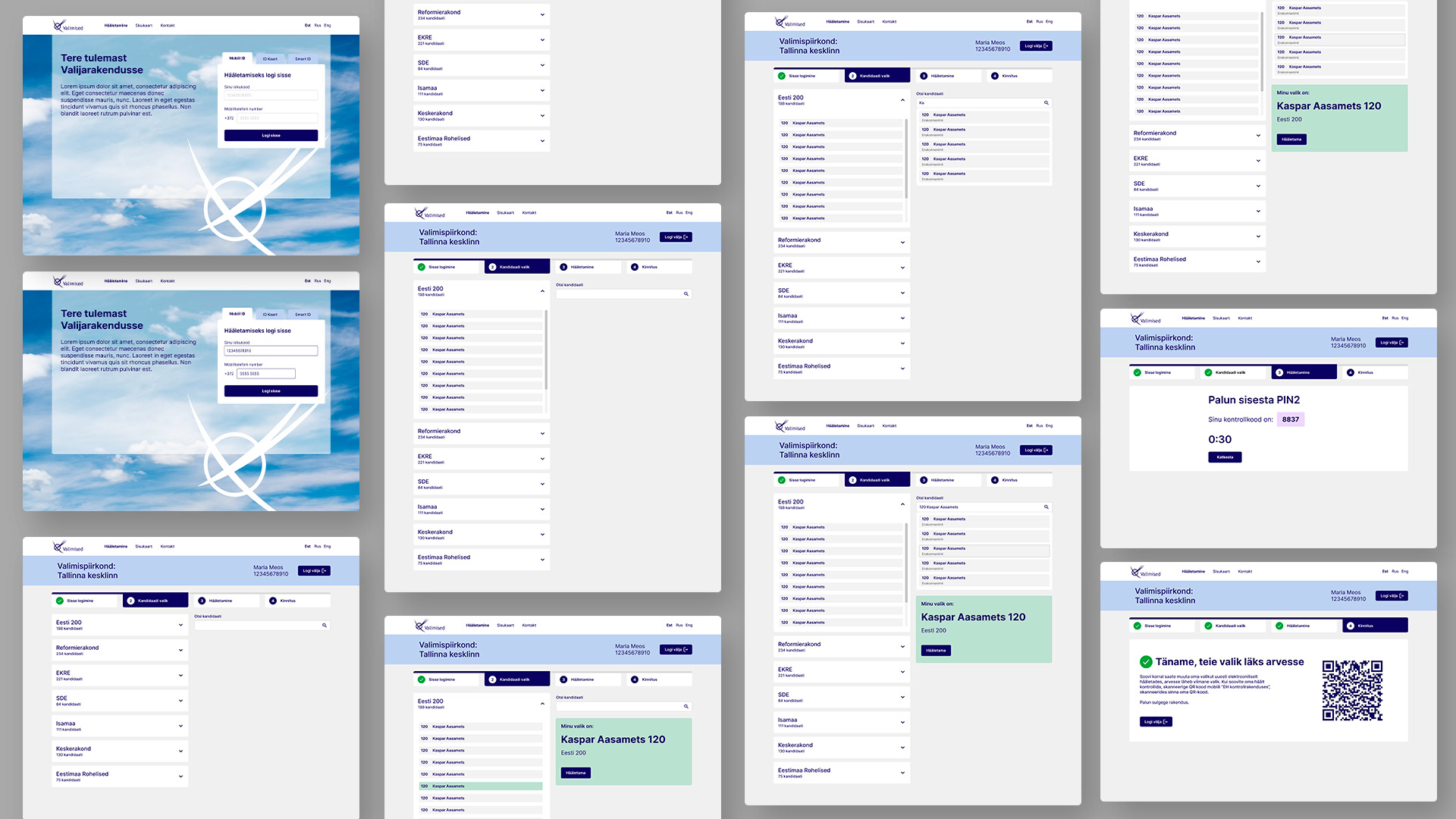School project | Estonian Academy of Arts The brief was to create a new design system and a prototype for valimised.ee. We focused on creating a user friendly app where citizens can vote for Government Council Elections. Due to time frame we focused only for users with Mobile ID. Project included mapping out user journey and creating a UX prototype. Next was creating a UI kit in Figma both for desktop and mobile. When prototype was frontend ready we moved on to coding. The html, css project website was built on a bootstrap framework.