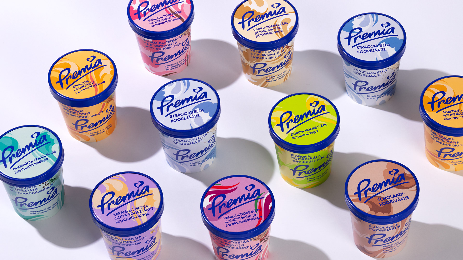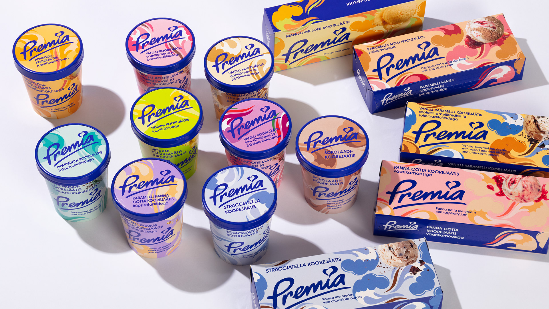 Facelift for Premia ice cream packages. The Golden Egg 2023 1st place in Package design category My role: Art Director & print preparation Agency: Kontuur Leo Burnett