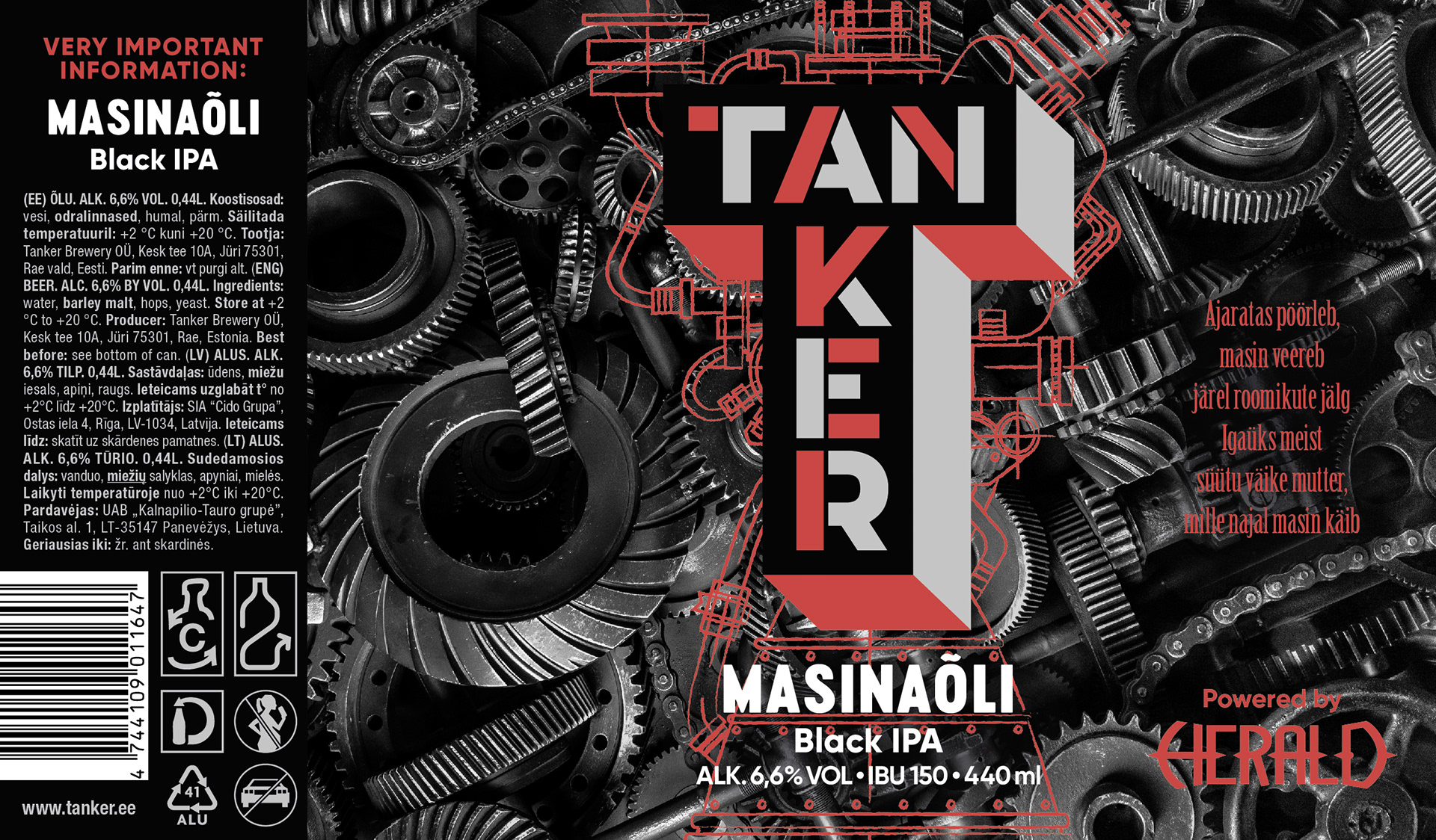 Beer label design for Tanker Brewery. This black IPA is brewed in collaboration with Estonian heavy metal band Herald. My role: Art director; illustrator Agency: Kontuur Leo Burnett 2022