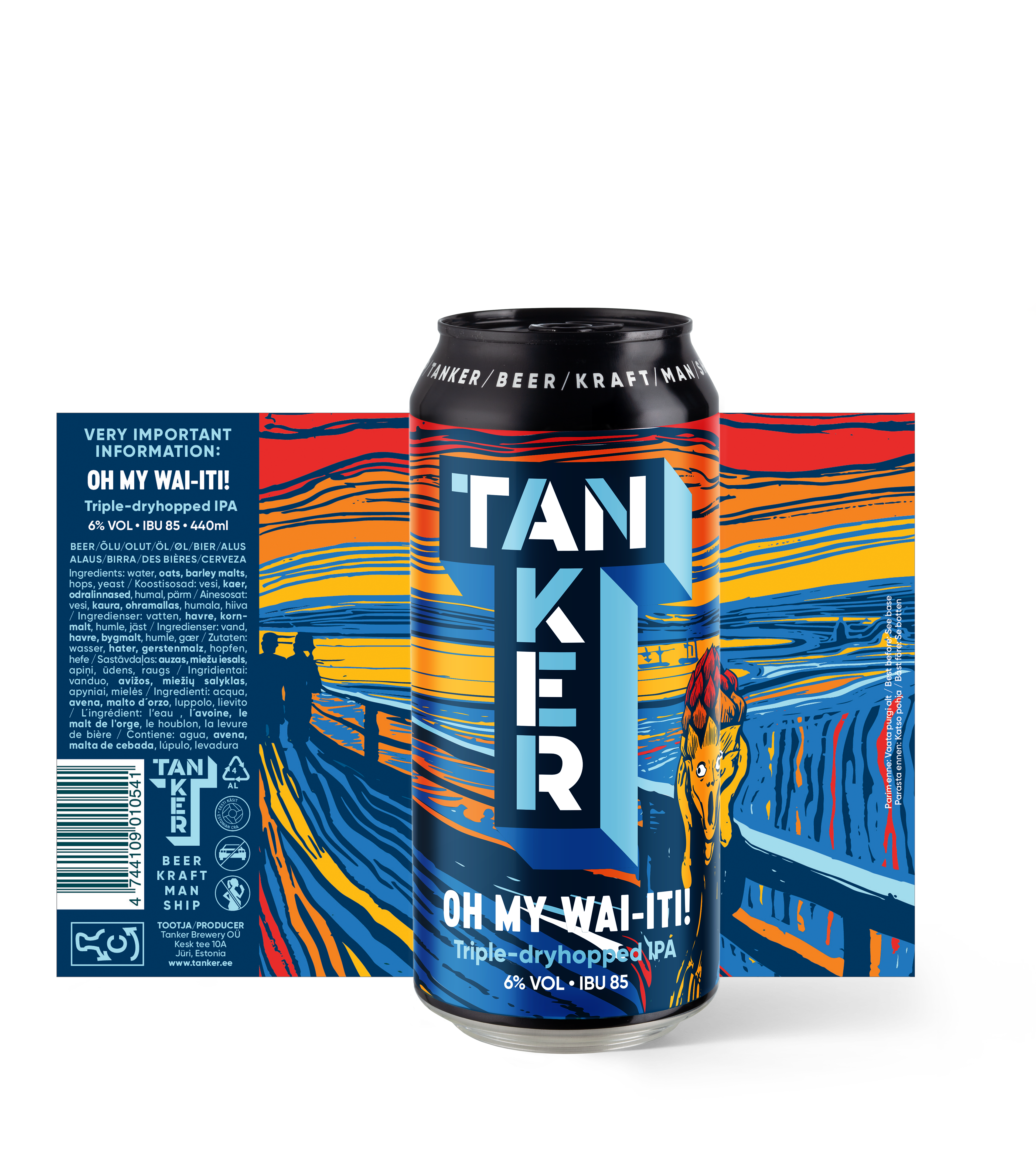 Beer label design for Tanker Brewery. Triple-dryhopped IPA named “OH MY WAI-ITI!” is exported all around the world. The colors refer to the apricot and melon taste nodes of the beer. My role: Art director, illustrator Agency: Kontuur Leo Burnett