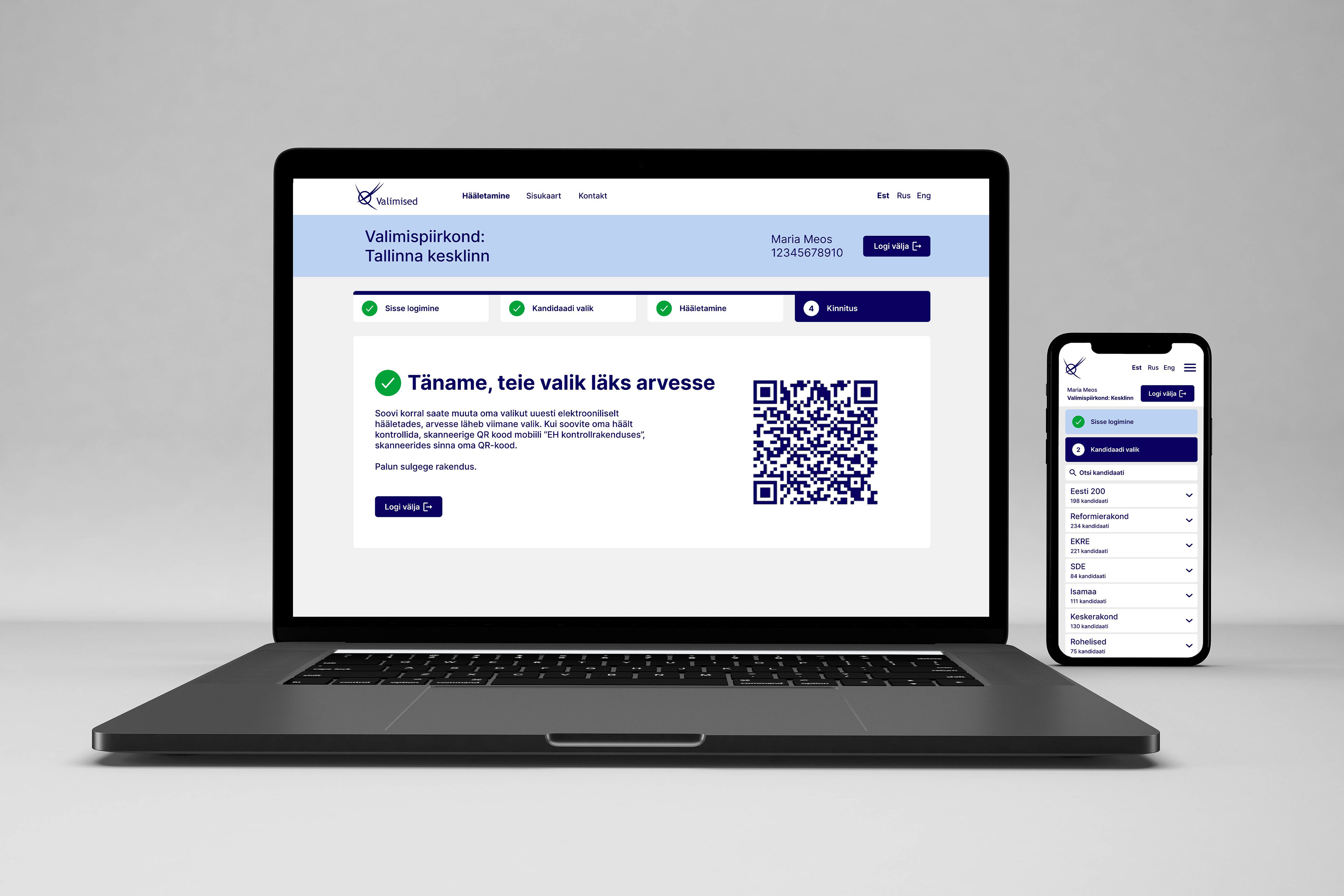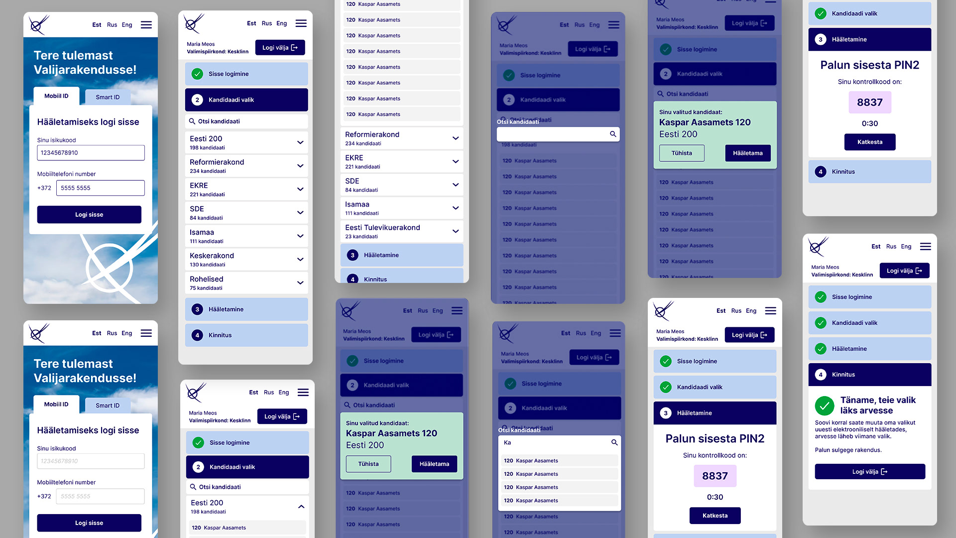 School project | Estonian Academy of Arts The brief was to create a new design system and a prototype for valimised.ee. We focused on creating a user friendly app where citizens can vote for Government Council Elections. Due to time frame we focused only for users with Mobile ID. Project included mapping out user journey and creating a UX prototype. Next was creating a UI kit in Figma both for desktop and mobile. When prototype was frontend ready we moved on to coding. The html, css project website was built on a bootstrap framework.